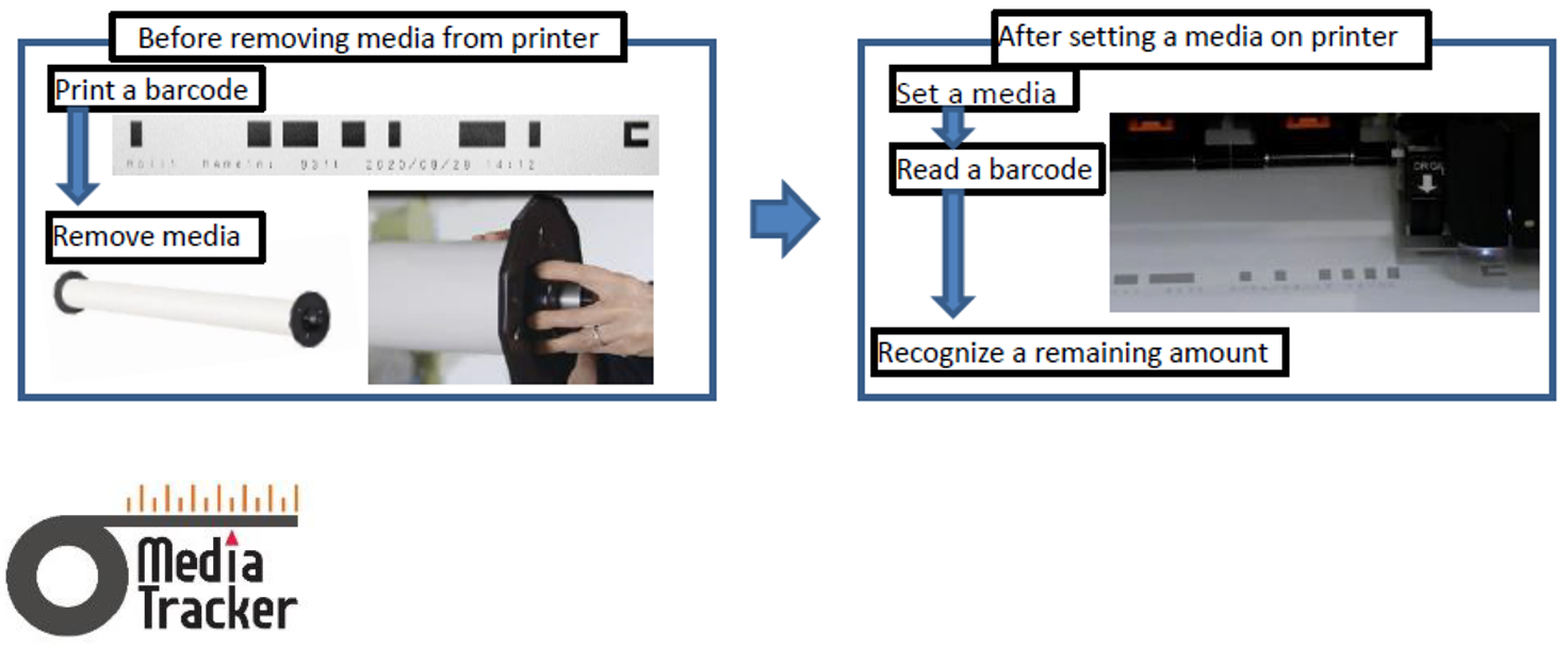 A bar code, including the remaining roll length, can be printed on the media before removing it from the printer.